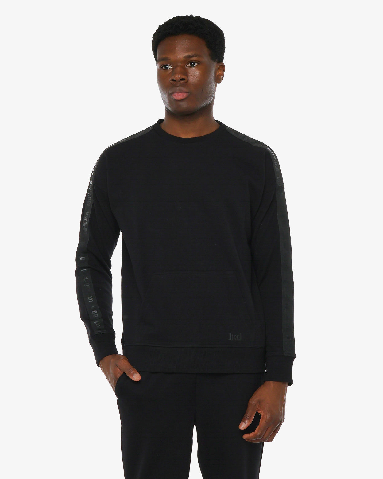 DESCRIZIONE: Felpa girocollo con ampio marsupio, nastro personalizzato JKD sulle spalle. CARATTERISTICHE E VANTAGGI: -COMFORT: vestibilità over, protegge senza fasciare -INNOVAZIONE: nastro con stampa tono su tono. -INTERESSE: capo trasversale, abbinabile a tutta la collezione -PLUS: facile manutenzione, lavabile in lavatrice.