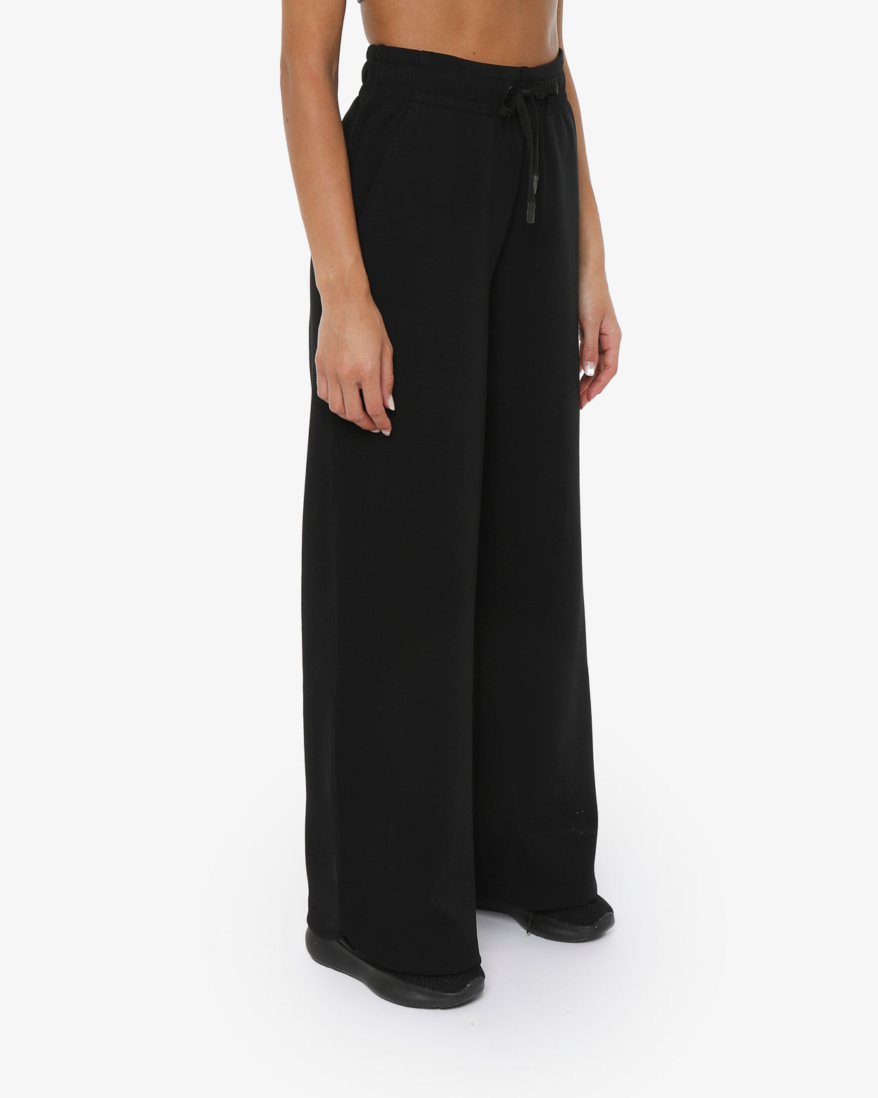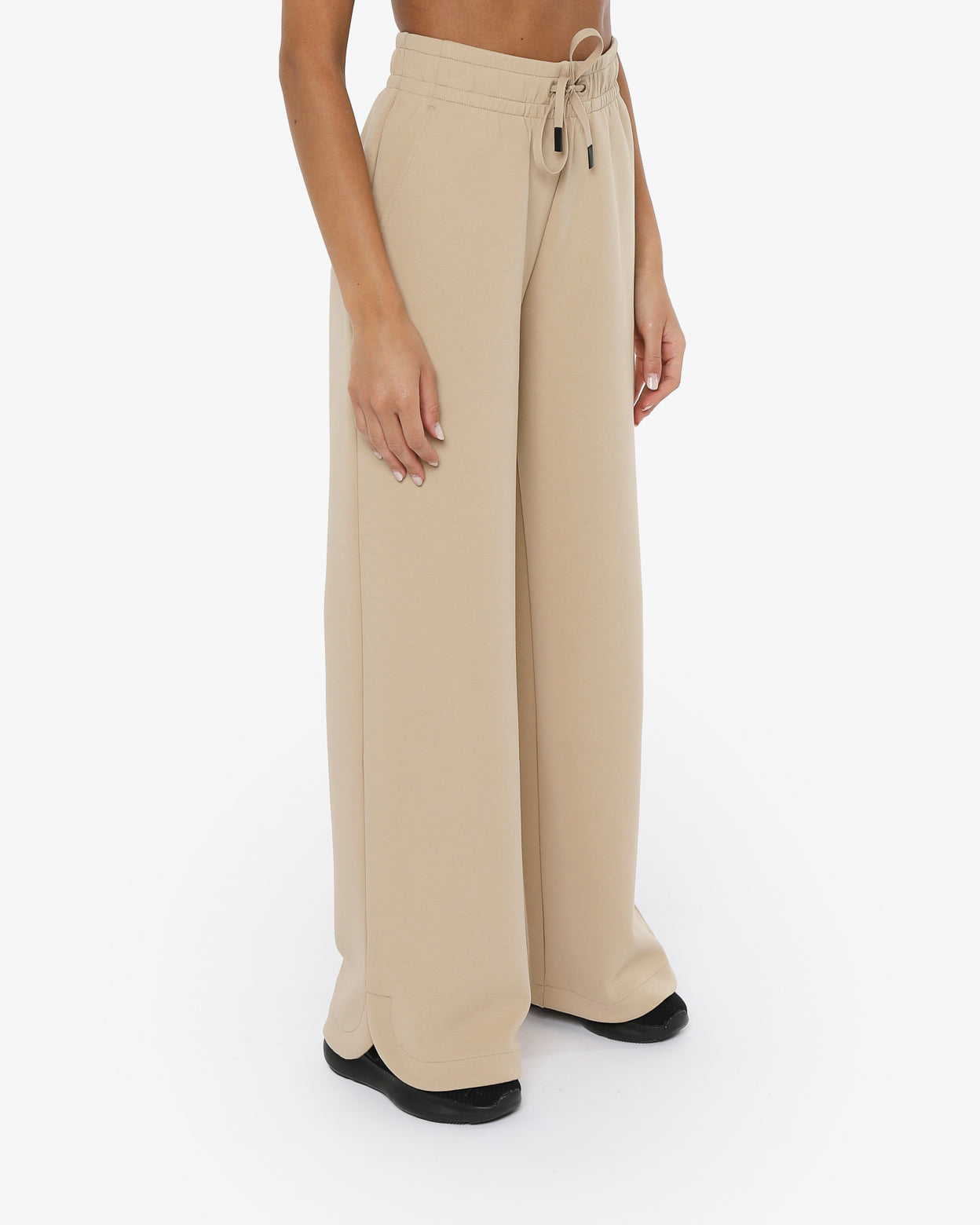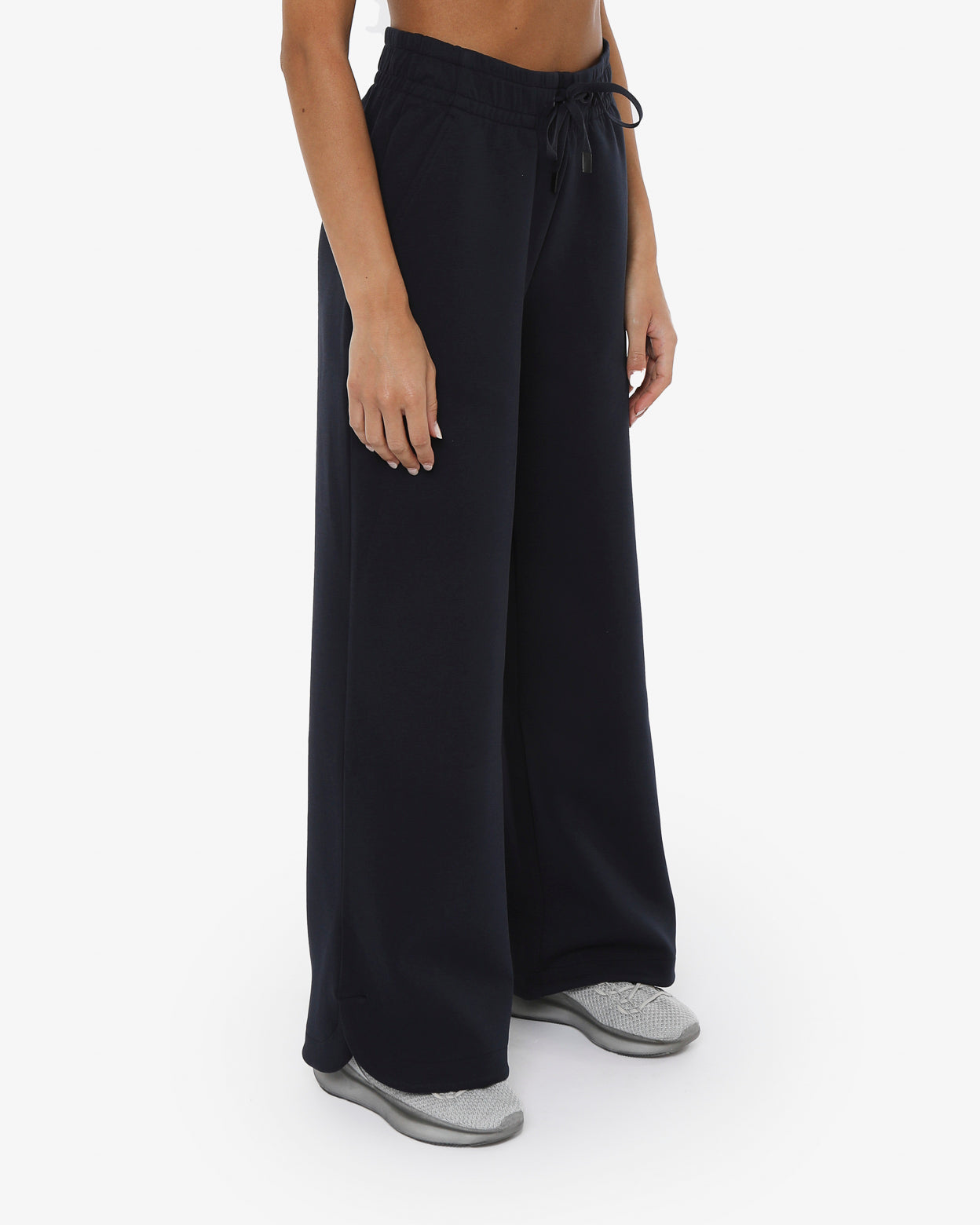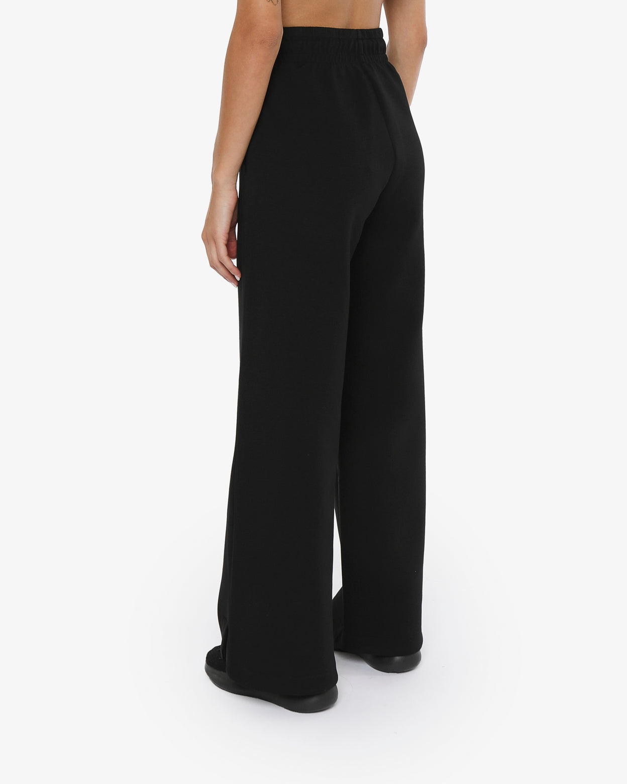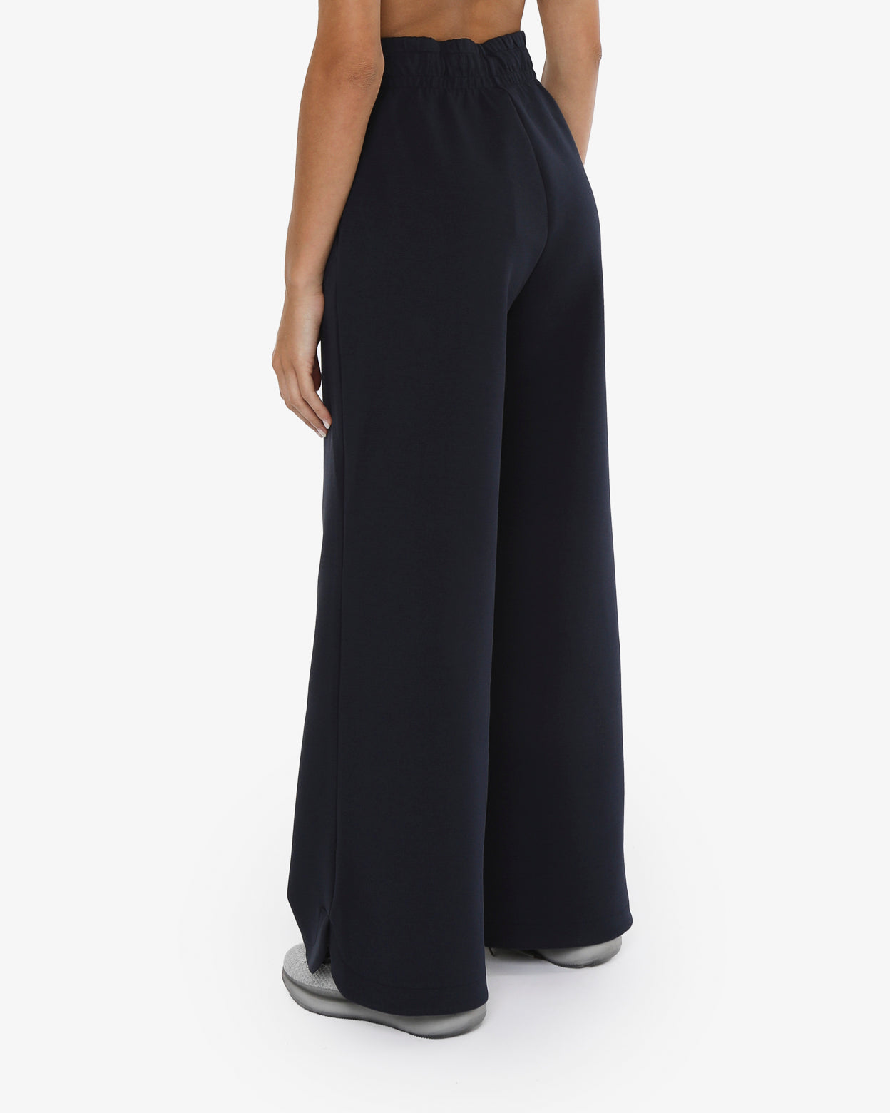 Pantaloni modello palazzo in morbido tessuto misto cotone con vita regolabile,-tasche laterali,fondo arrotondato con spacchetti laterali,-il logo in silicone è posizionato sotto la tasca sinistra sul davanti, -un capo versatile dal look minimal ideale sia per lo sport che nel tempo libero.