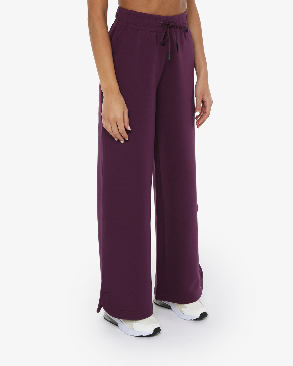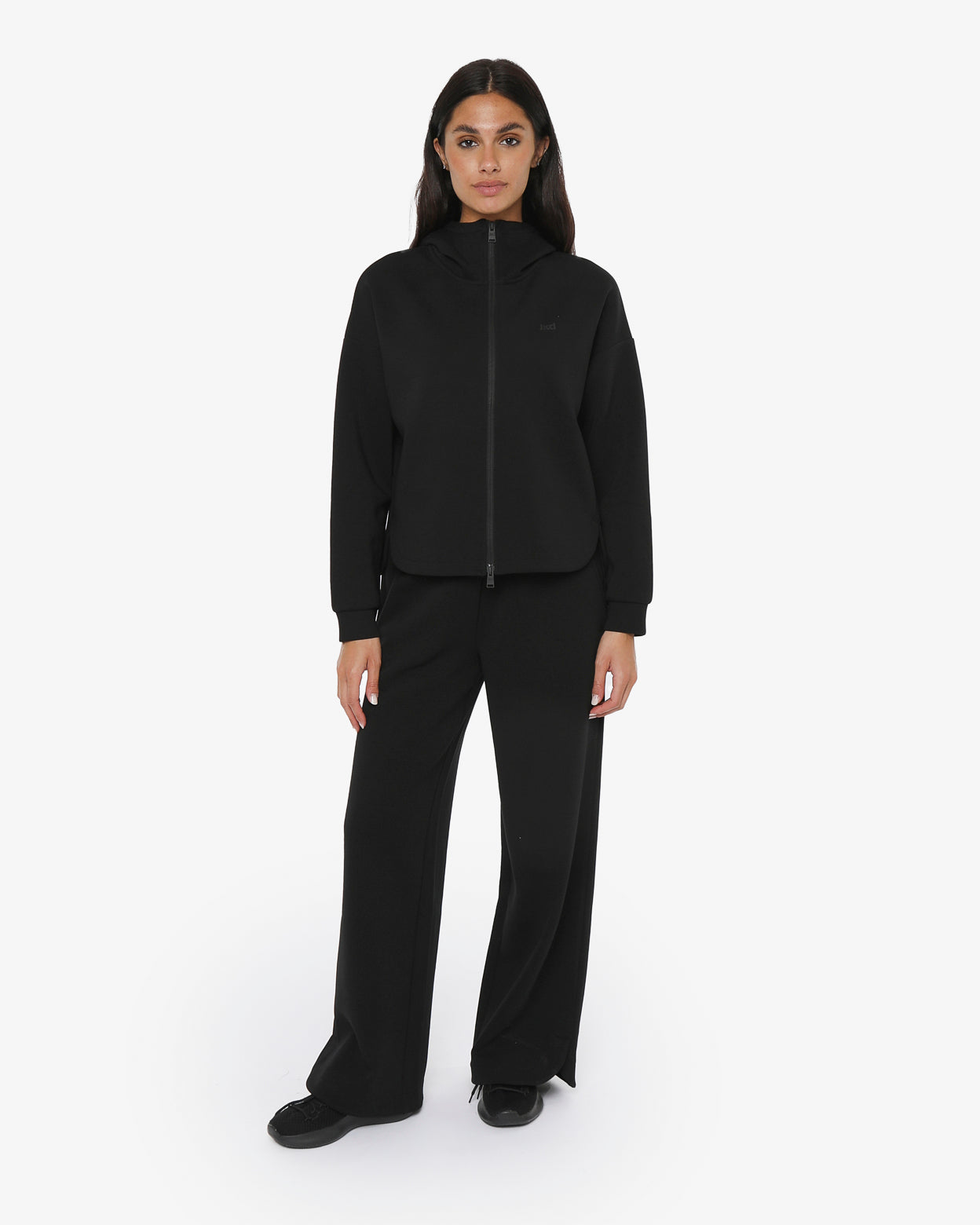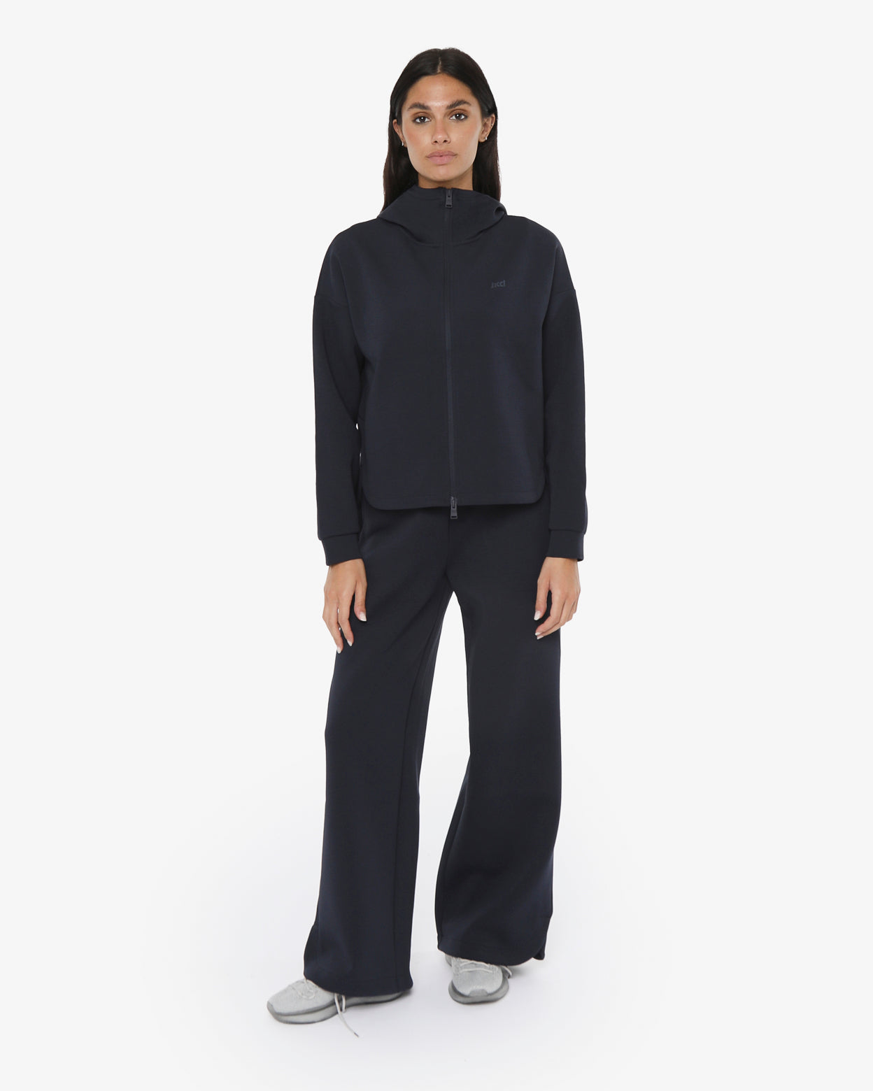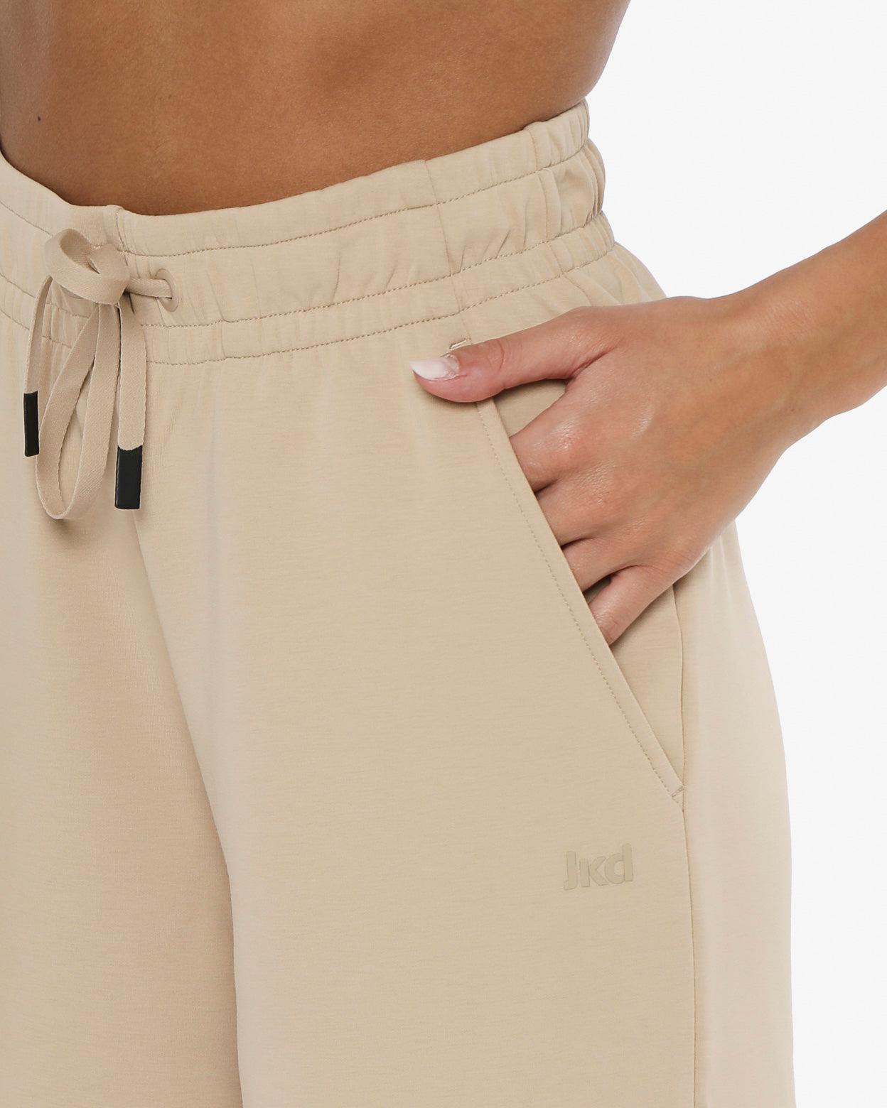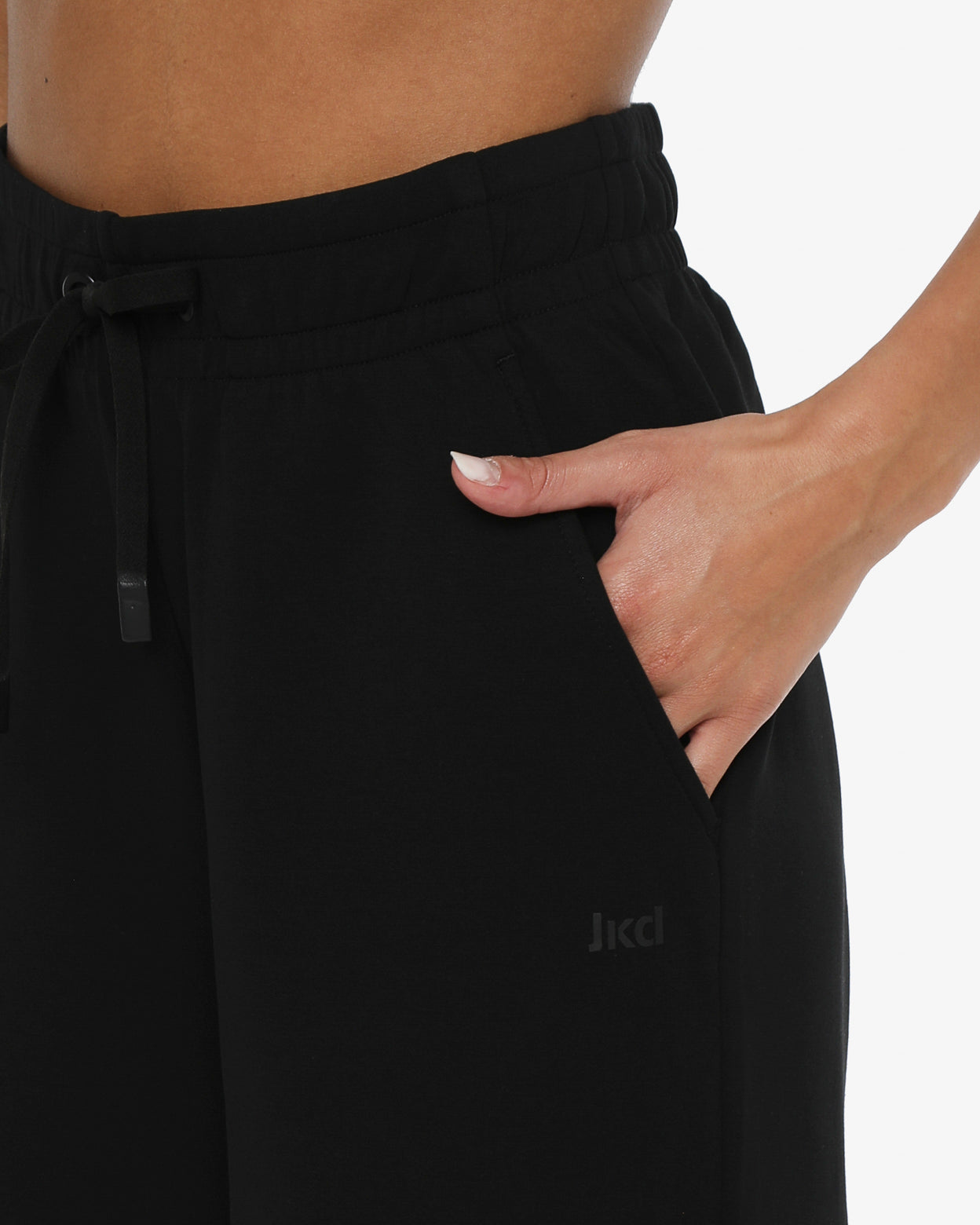 Pantaloni modello palazzo in morbido tessuto misto cotone con vita regolabile,-tasche laterali,fondo arrotondato con spacchetti laterali,-il logo in silicone è posizionato sotto la tasca sinistra sul davanti, -un capo versatile dal look minimal ideale sia per lo sport che nel tempo libero.