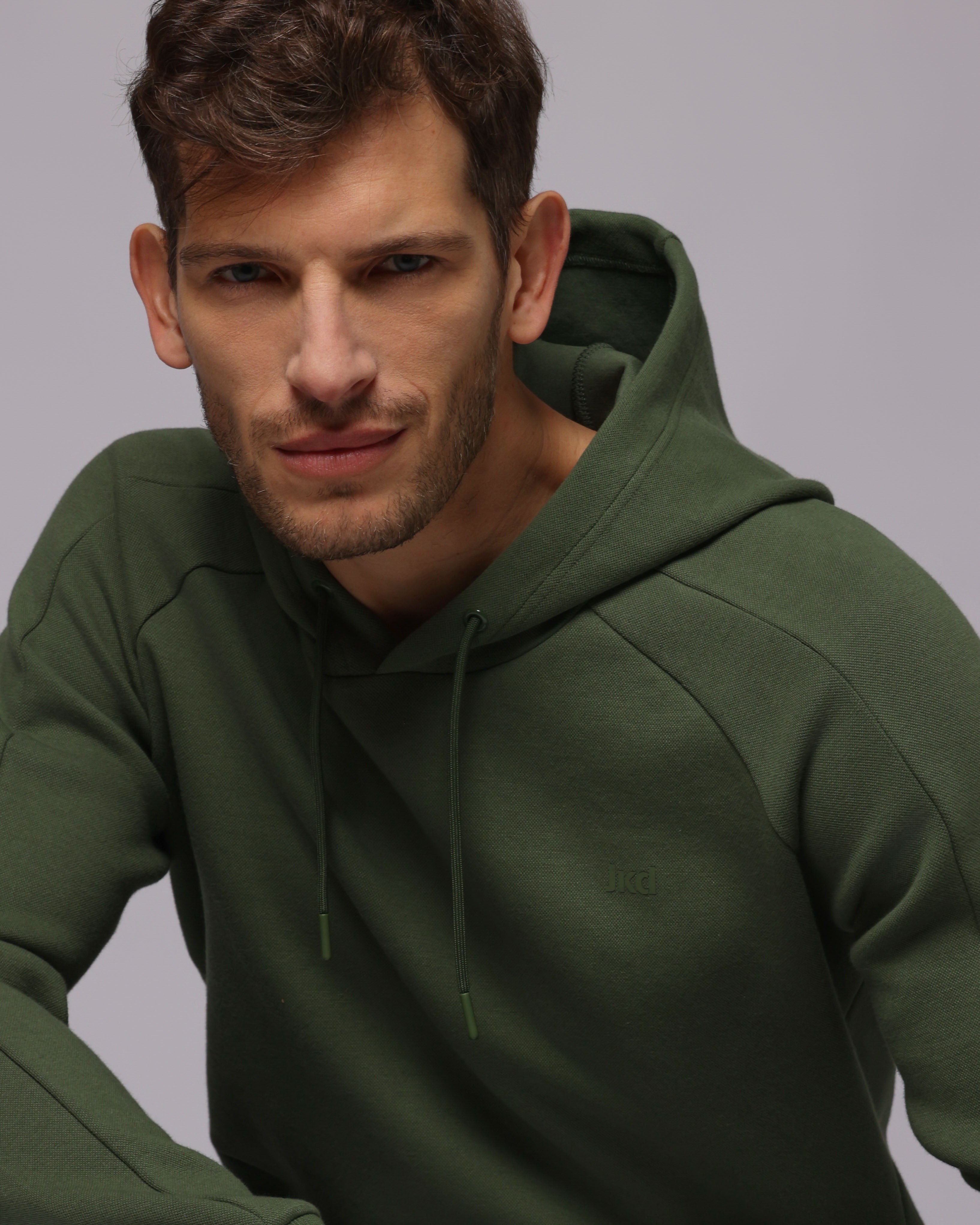 Felpa in tessuto misto cotone dall'aspetto a nido d'ape. -Il modello ha cappuccio regolabile e tasca marsupio. -Un capo versatile edin tendenza, ideale per ogni occasione.